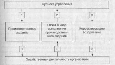 Первый этап состоит в формулировании производствен­ного (рабочего) задания и доведении его содержания до ис­полнителей. На втором этапе осуществляется выполнение полученного задания и составляется отчет (или регулярные отчеты) о ходе выполняемых работ и возникающих при этом отклонениях. Сущность третьего этапа заключается в анали­зе субъектом управления полученной в отчетах информации, разработке на основе указанного анализа программ регули­рующего воздействия и доведении содержания этих программ до исполнителей.