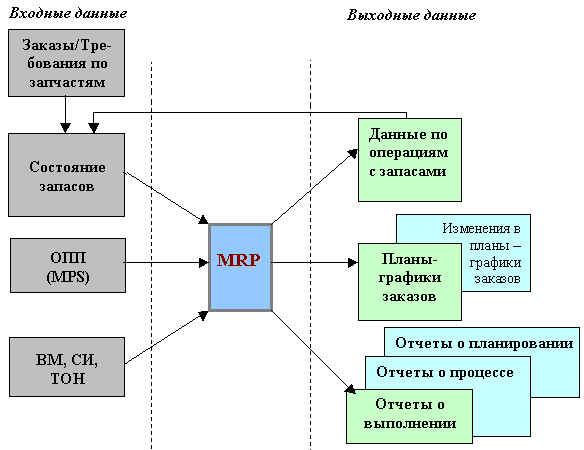 ü план-график снабжения материальными ресурсами производства - количество каждой учетной единицы материалов и комплектующих для каждого периода времени для обеспечения MPS.