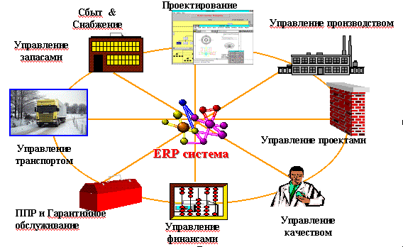 Основным назначением ERP систем является автоматизация процессов планирования, учета и управления по основным направлениям деятельности предприятия и поэтому Enterprise Resources Planning systems – Системы Планирования Ресурсов Предприятия в общих чертах можно рассматривать как интегрированную совокупность следующих основных подсистем: