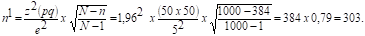 Если же V выборки превышает 5 % совокупности, то последняя считается малой, и в вышеприведенные формулы вводится поправочный коэффициент. Объем выборки в данном случае определяется следующим образом: