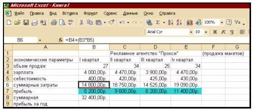 б. Технология решения задач коммерческой и рекламной практики средствами электронной таблицы