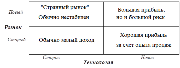 При решение вопросов о коммерческих использованиях результатов НИОКР следует учесть такие соотношения между технологией и фазой развития рынка фирмы (рис. 55).