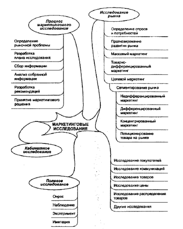формализованное средство получения информации, необходимой для принятия маркетинговых решений в конкретной рыночной ситуации. Это систематический дизайн, сбор, анализ и предоставление данных, относящихся к специфической маркетинговой ситуации компании. Маркетинговые исследования могут предполагать оценку рыночного потенциала и рыночной доли, анализ удовлетворенности потребителей и покупочного поведения; исследования по всем основным элементам маркетингового комплекса - продукт, цена, распространение, продвижение. Компании могут проводить исследования собственными силами, силами внешних агентств или совместно с ними.