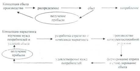 Рис. 1.1. Различие концепций сбыта и маркетинга