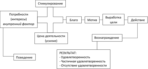 Мотивация – процесс происходящий под воздействием внешних и внутренних факторов и стимулирование является только одним из составляющих этого процесса. В упрощенном виде процесс мотивации трудовой деятельности может быть представлен в следующем виде: