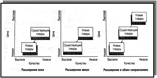 Наращивание ассортимента может идти либо вниз, либо вверх, либо в обоих направлениях одновременно
