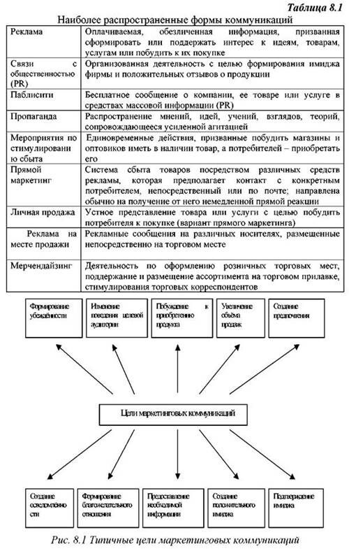 Наиболее распространенные в настоящее время формы маркетинговые коммуникаци представлены в таблице 8.1.