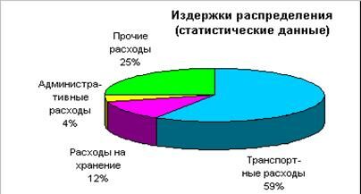 Распределение товаров включает следующие издержки: расходы на транспортировку, расходы на хранение, административные расходы, прочие расходы распределения.