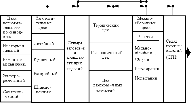 Рис. 2.1. Производственная структура предприятия с технологической специализацией (фрагмент)