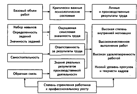 Некоторые ученые (например, Дж. Хэкмен и Дж. Олдхем в предложенной в 1980г. модели обогащения труда [8]) высказали предположение, что изменение менеджментом характеристик рабочего процесса позволяет повысить мотивацию работников и степень их удовлетворения трудом (рис. 4.1).