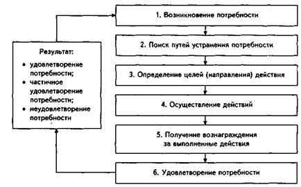 6. Удовлетворение потребности. В зависимости от степени снятия напряжения, вызванного потребностью, человек или успокаивается (если потребность удовлетворена), или продолжает искать возможности для ее удовлетворения.