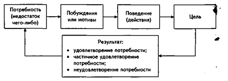 Побуждение — это ощущение недостатка в чем-либо, имеющее определенную направленность. Оно является поведенческим проявлением потребности и сконцентрировано на достижении цели. Когда человек достигает цели, его потребность оказывается удовлетворенной, частично удовлетворенной или неудовлетворенной. Такой тип поведения показан на рис. 2.2.