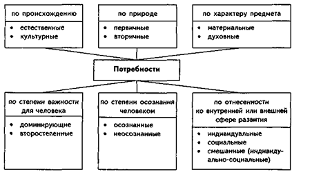 Потребности как внутренние психические состояния регулируют поведение человека, определяют направленность его мышления, чувств и воли. Удовлетворяя потребности и достигая цели, человек тем самым создает новые объекты, новые условия среды, которые порождают и новые потребности.