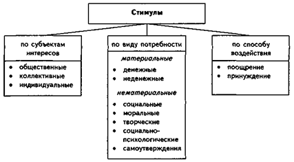 Классифицируют стимулы по различным признакам (рис. 2.5). По субъектам интересов различают три группы тесно взаимосвязанных стимулов: общественные, коллективные и индивидуальные.