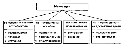 Мотивацию классифицируют по нескольким признакам (рис. 1.1).