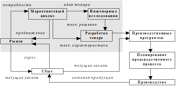 | Маркетинг | Выявление рыночных потребностей. Выработка и обоснование концепции продукции. | Определение параметров целевого потребителя. Разработка системы критериев продукта и сбытовой сети. | Тестирование покупательского спроса. Оценка потребителями опытного образца продукции. | Уточнение оценок потребителей и корректировка системы критериев продукта и системы сбыта. План массового выхода на рынок. | Ознакомление сбытового и обслуживающего персонала с системой требований и подготовка к массированному выходу на рынок. | Наполнение и окончательная корректировка каналов сбыта. Продвижение продукции. Взаимодействие с потребителем. Определение направлений дальнейших усовершенствований продукта. |