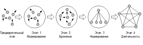 Рассмотрим пятиступенчатый процесс развития группы, представленный на следующем рисунке: