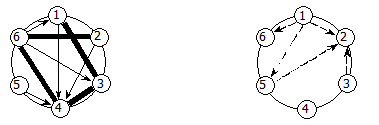 Удобным способом анализа данных социоматрицы являются социограммы (рис. 22). Они позволяют с высокой степенью наглядности отразить внутригрупповые предпочтения (изображены сплошными стрелками, кто кого выбирает) и отвержения (изображены пунктирными стрелками, кто кого отвергает). На социограмме каждый член группы обозначается кружком. Если предпочтения или отвержения взаимны, то вместо одинаковых стрелок между двумя кружками можно проводить жирную линию того типа, который используется для стрелок односторонних предпочтений или отвержений. (Круговые социограммы иллюстрируют данные таблицы.)