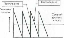 Примеры циклического запаса: транспорт, обеспечивающий вывоз товара от поставщика, прибывает каждую первую неделю месяца или каждую пятницу, и за один подвоз полностью обеспечивается потребность на всю следующую неделю в определенном виде товаров.