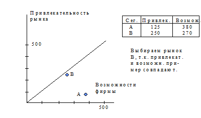 Делается по совокупности характеристик, которые отра-жают привлекательность рынка и возможности фирмы (конку-рентные позиции).