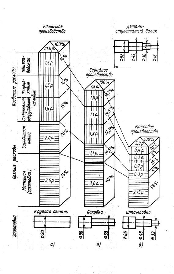 Организационно-технические особенности отдельных типов производства существенным образом сказываются на экономике предприятий. Например, съем чугунных отливок с 1 м2 производственной площади литейных цехов в серийном производстве в два-три раза, а в массовом – в четыре-пять, раз больше, чем в единичном. Чем больше объем производства изделий, чем ближе предприятие к массовому типу производства, тем меньше затраты живого труда, тем больше удельный вес расходов по содержанию оборудования.