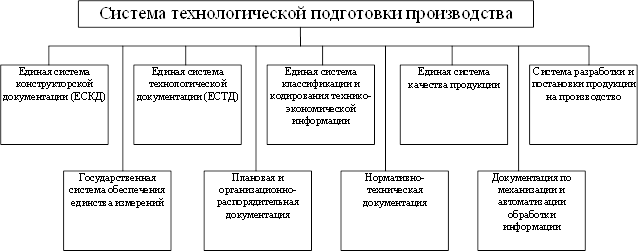 Единая система технологической подготовки производства (ЕСТПП) – (см. рис. 1.) установленная государственными стандартами система организации и управления технологической подготовкой производства, предусматривающая широкое применение прогрессивных технологических процессов, стандартной технологической оснастки и оборудования, средств механизации и автоматизации производственных процессов, инженерно-технических и управленческих работ (ГОСТ 14.001–73*).