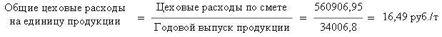 В результате расчета определяем долю общих цеховых расходов на единицу выпускаемой продукции: