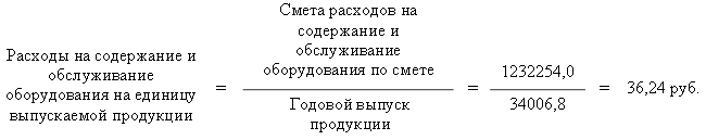 По результатам расчета сметы выявляются плановые расходы на содержание и обслуживание оборудования на единицу выпускаемой продукции: