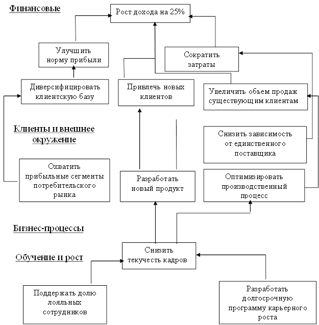Таким образом, сбалансированная система показателей дает возможность руководителям объединить стратегию компании с набором показателей, индивидуально разработанных для различных уровней управления и связанных между собой.