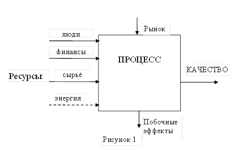 Название курса «Статистические методы в управлении качеством» предполагает знание, по крайней мере в общих чертах, объекта, которым предстоит научиться управлять. Используя процессный подход, выясним сначала, откуда берётся качество и каким образом это самое качество становится объектом управления. Схематично в самом общем виде появление качества можно представить в виде следующей модели «чёрного ящика» (см. рисунок 1):