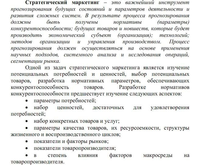 Стратегический маркетинг нацеливает компанию на привлекательные экономические возможности и направления, адаптированные к ее ресурсам и преимуществам, обеспечивающие потенциал для ее рентабельности и роста.