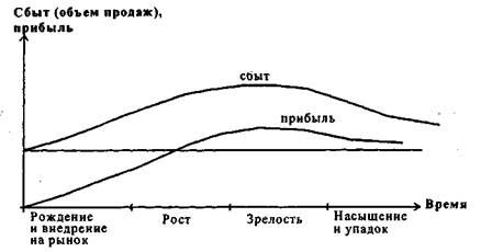 Жизнь товара на рынке разделяется на несколько основных этапов, каждому из которых соответствует свой уровень сбыта и другие маркетинговые характеристики: