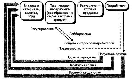 Технологический процесс создается для переработки сырья в конечный продукт, который, в свою очередь, продается заказчику. Финансовые учреждения, рабочая сила, поставщики и заказчики, правительство - все являются частью окружения.