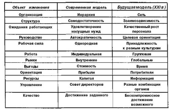 Основные направления изменений отдельных элементов моделей управления - современной и будущей – представлены в таблице 1.2.