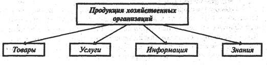 Хозяйственные организации создаются для удовлетворения потребностей и интересов человека и общества во внешней для организации среде. Данные организации могут производить продукцию в виде товара, услуг, информации или знаний (рисунок 1.11).