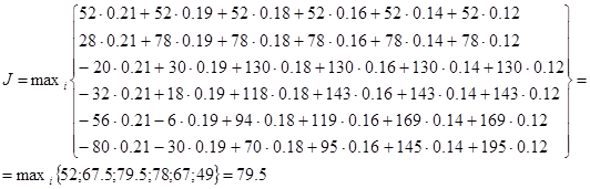 - оценка i-й альтернативы принятия решения при j-м варианте экономической среды. Исходя из этого, предприниматель выбирает такую стратегию J, при которой наименьший выигрыш