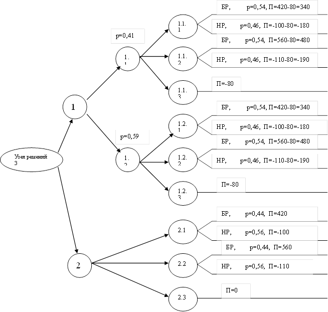 2 Аналогично строим «дерево решений» в условиях риска (рисунок 4.2):