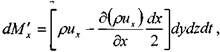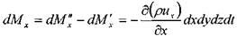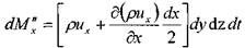 Изменение массы жидкости внутри элемента при движении жидкости вдоль оси ОХ: