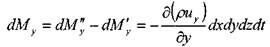 Аналогично, изменение массы жидкости внутри элемента при движении жидкости вдоль оси OY:                                                                                                  1,