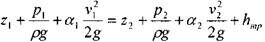 Внося эту поправку в уравнение для элементарной струйки жидкости, получим уравнение для потока конечных размеров. Практически а= 1.0- 2,0.