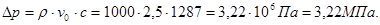 (v0 – скорость воды в трубе в момент закрытия задвижки):