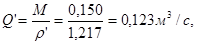 Определить массовый расход M  и объемный расход Q¢ (при атмосферном давлении p¢ = 0,1014 МПа) воздуха по металлической трубе длиной L = 40 м и диаметром d = 25 мм при следующих исходных данных:
