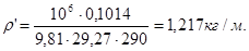 Плотность  воздуха  при  давлении  p1 = 0,8 МПа  и  температуре  T = 290 К