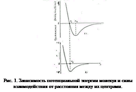 На примере двух изолированных молекул (рис. 1) на расстоянии  сила взаимодействия равна нулю, то есть силы отталкивания уравновешивают силы притяжения. При  результирующей силой является сила притяжения, которая растет по абсолютной величине, достигая максимума при , а затем уменьшается. При  – силы отталкивания. Молекула в поле этих сил обладает потенциальной энергией , которая связана с силой f(r) дифференциальным соотношением