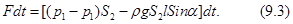 - сила тяжести G = ρS2l, где l – длина рассматриваемого объема 1-1-2-2;