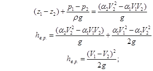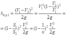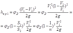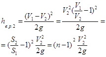 Запишем для сечений 1 - 1 и 2 - 2 уравнение Бернулли с учетом потерь напора на расширение hв.р.