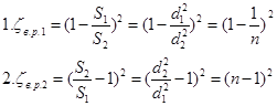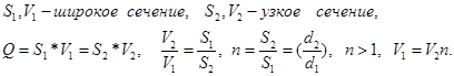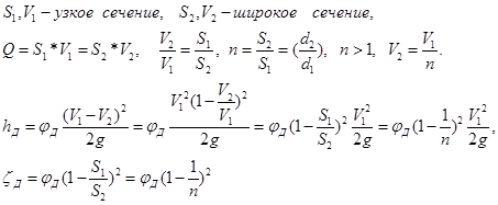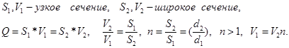 Определим коэффициенты сопротивления относительно скоростей в узком S2 и широком сечении S1. Уравнение неразрывности