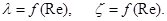 При ламинарном режиме движения и малых числах Рейнольдса Re < 2300, когда в потоке преобладают силы вязкостного трения над силами инерции, коэффициенты сопротивления зависят только от числа Re:
