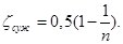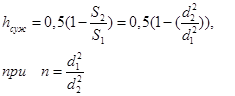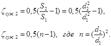 где ξсуж - коэффициент сопротивления внезапного сужения зависящий от степени сужения и от сечения к которому приводится коэффициент, n = S2/S1 - степень сужения.