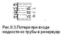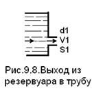 9.5. Потери энергии при выходе из резервуара в трубу.